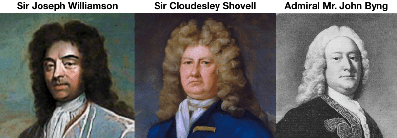 Visit the Guildhall Museum in Rochester and you will see portraits of two of the three men, Sir Joseph Williamson and Sir Cloudesley Shovell, but not the third, Mr. John Byng – the reason for this will become clear.