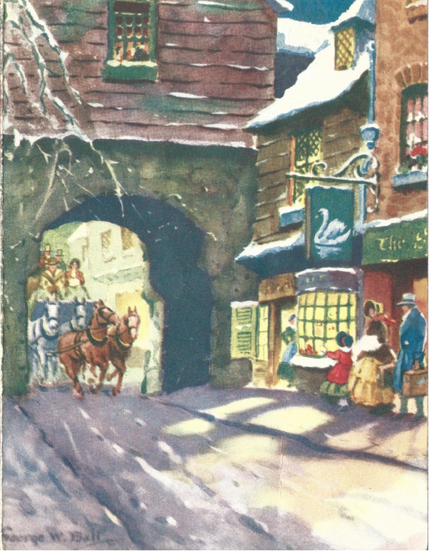 “As I passed along the High Street, I heard the Waits at a distance, and struck off to find them. They were playing near one of the old gates of the City, at the corner of a wonderfully quaint row of red-brick tenements, which the clarionet obligingly informed me were inhabited by the Minor-Canons.”