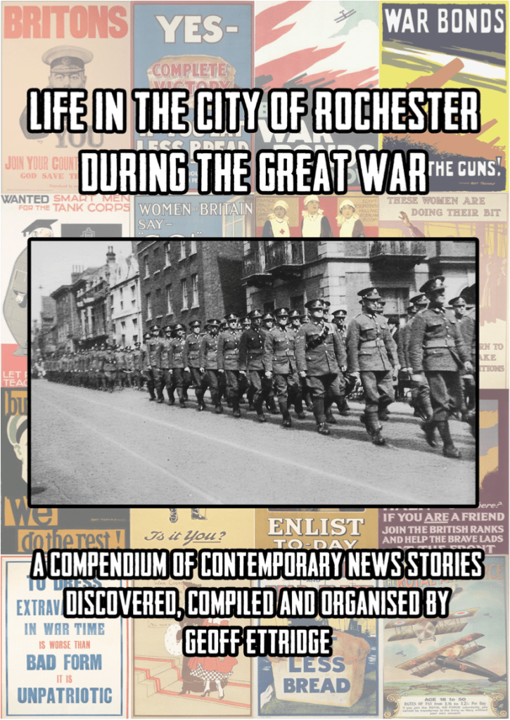 2). Life in Rochester during WW1: This was the first total war that was directly experienced by us at ‘home’. Previously soldiers went away to fight battles in other countries. During WW1 we were bombed and there was a canon in France that could shell us.