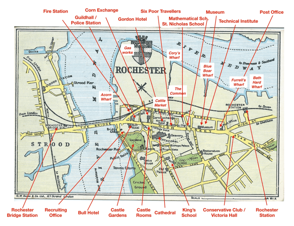 As if the people of Rochester were not nervous enough a journalist reporting on the “tremendous advance in death-dealing machinery which has taken place within the last few years”, claimed that artillery was now available that could fire a shell from Trafalgar Square and hit Rochester[8] Perhaps to press home the fact that we were now at war an order was passed, under the provisions laid down for districts in which troops are billeted, that required licensed houses in Rochester to close at 9 o’clock[9]– an hour earlier than Maidstone.