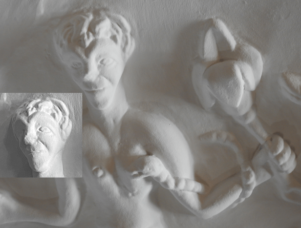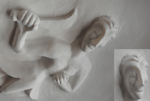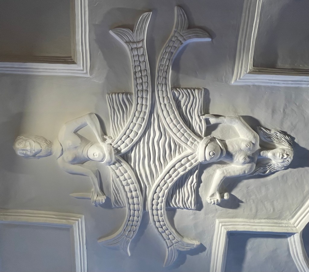 Moulds would probably have been used for the main features in the ceiling’s design. The design of the Melusine tails are particularly fine. However, it is possible that some hand-crafting was done with the facial features? By the late 16th century, artists were exploring other mediums. As we view the ceilings, we might be observing the work of an artist rather than a regular plasterer.