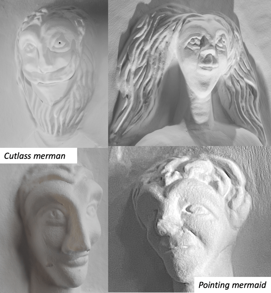 The gender of the second merperson in this room, furthest from the window, is less easy to identify. Typically, mermaids are portrayed as holding a mirror in one hand and a comb in the other – luring sailors to their doom.